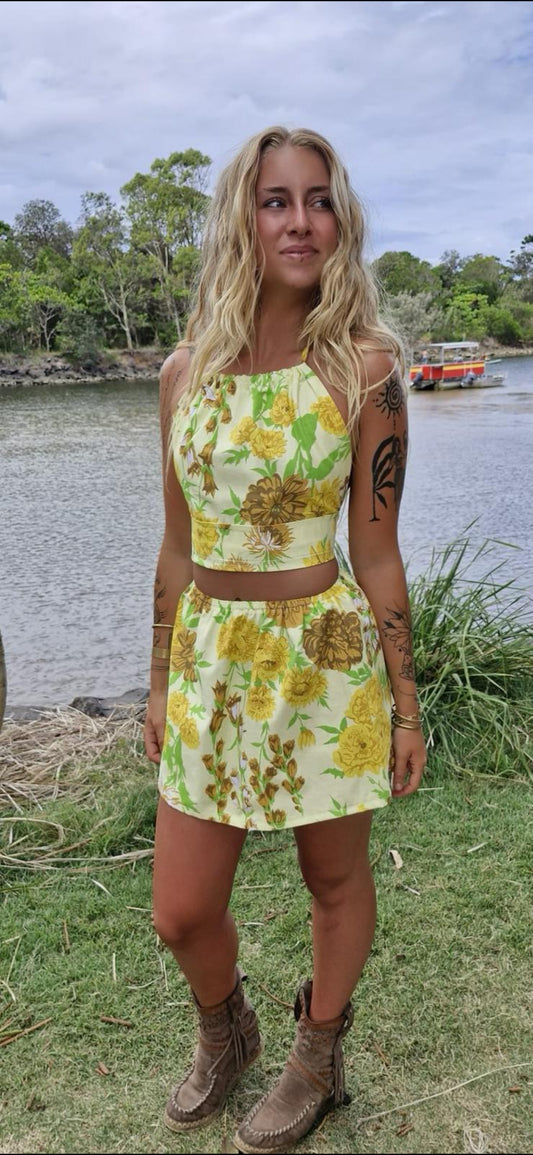 Linen Rosy Rust Halter/High Waist Mini Combo Set
