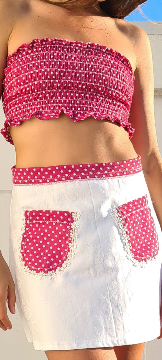 Gina Boob Tube (Hot Purple Pink & White Polka Dot)